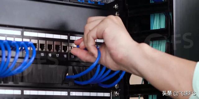 ②然后根据机柜摆放的位置和操作方便程度来选择从后面还是前面端接网线。如果选择从前面端接 ,应先把线缆从配线架孔拉入并保证线缆长度适中,既不太紧也不过长,然后将网线推进配线架孔并锁定。
