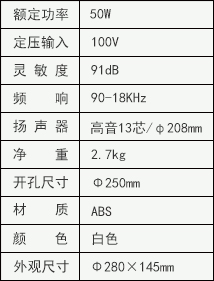 · 该扬声器可以简单快捷的安装在人工天花板上;