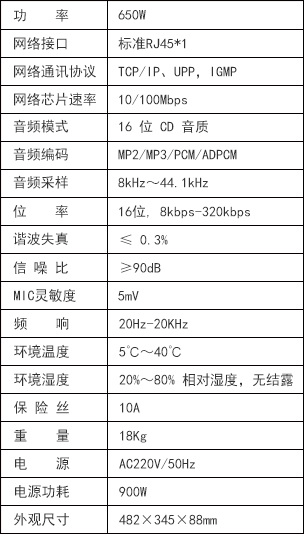 · IP网络终端与合并式功放一体,100%满功率输出;