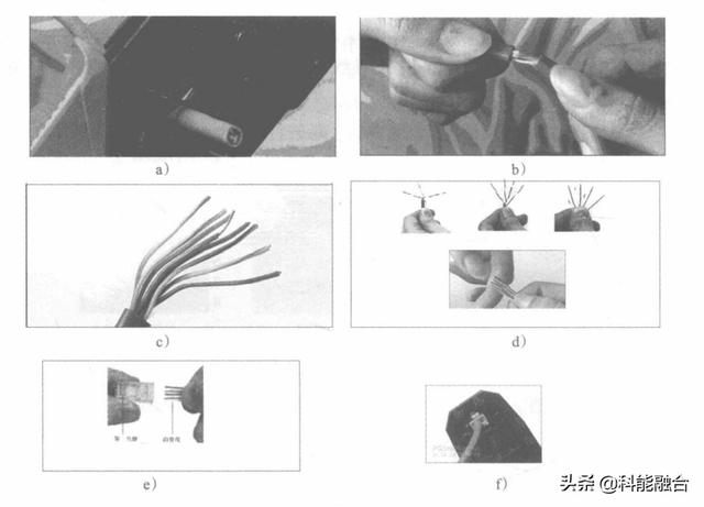 3)为绝缘导线解扭,使其按正确的顺序平行排列,导线6是跨过导线4和5在套管里不应有未扭绞的导线。