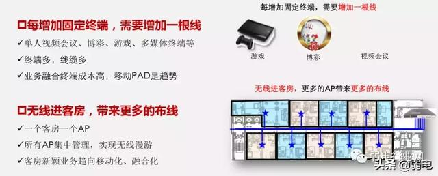 “一房多线”是酒店智能化建设最大的绊脚石,说白了,一根线只解决一个业务,酒店智能化系统里面至少是有三大类业务,数据、电话、IPTV,如果一根线解决一个业务,那么至少需要三根线,在成本上不节省,在施工上有难度。