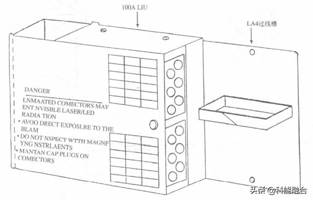 1)100A光纤互连装置(LIU):可完成12个光纤端接。该装置宽为190.5mm(7.5in),长为222.2mm(8.75in),深为76.2mm(3.0in)。