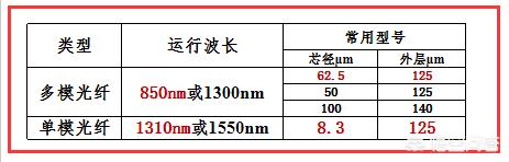 从上图中可知,多模光纤和单模光纤的芯径和外层直径是不同的。
