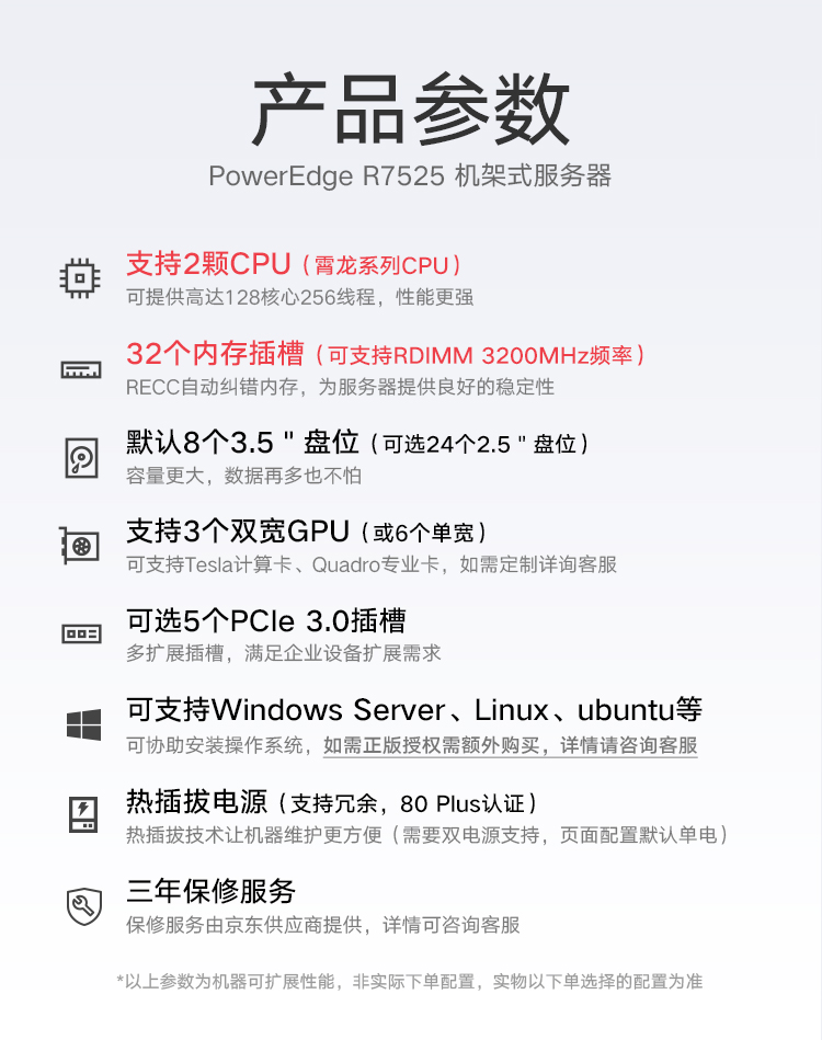 Dell PowerEdge R7525 是一款高度可扩展的双插槽 2U 机架式服务器,能够提供强大的性能和灵活的配置。它是所有闪存软件定义的存储 (SDS)、虚拟桌面基础架构和数据分析工作负载的理想之选。