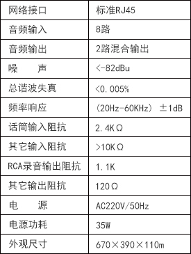 · 八路话筒/音频输入,两路本地混合输出,一路RJ45网络输出;