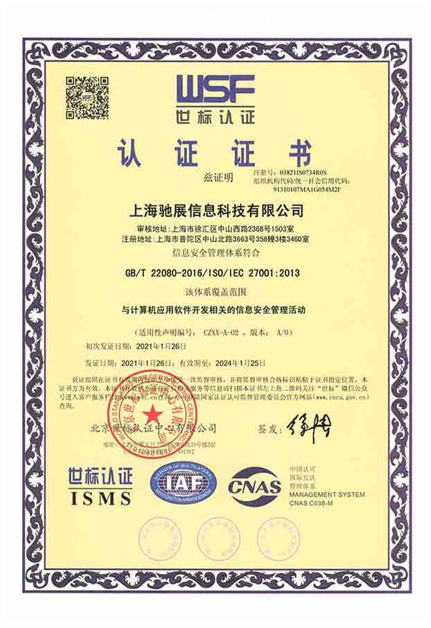 上海驰展信息科技有限公司,成立于2016年,是一家专门从事系统集成、弱电项目(电子工程)设计施工以及信息 技术服务的公司。经历多年的运营和沉淀,诚信经营并专注于系统集成和弱电智能化,公司形成了完整、稳定和高效的 组织团队,拥有方案设计、弱电工程实施和信息技术服务等方面的中高级技术人员以及优秀的管理团队