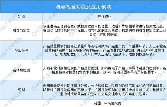 机器视觉是计算机通过模拟人类视觉功能来使机器获得相关视觉信息并加以理解。机器视觉技术在工业、服务业、科研等领域应用广泛,包括各类工业自动化设备、数控机床、半导体检测等高精密仪器、自动光学检测设备等,实现引导和定位、外观检测、高精度检测和识别等功能。