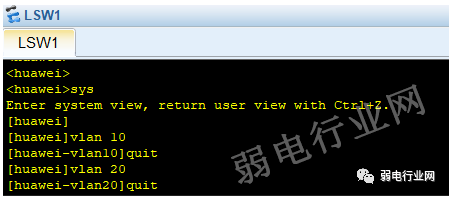 那么就在lsw1中创建了两个vlan,10与20。