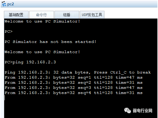 2、pc2与pc4是同一个vlan,可以ping通。