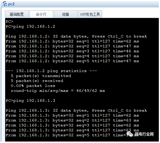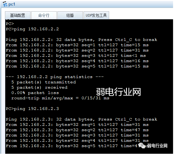 2、pc2可以完全ping通不在同一个vlan中的pc1与pc3的网关。
