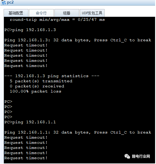 3、pc2无法ping通pc1与vlan 10的网关,因为他们不是同一个vlan中。