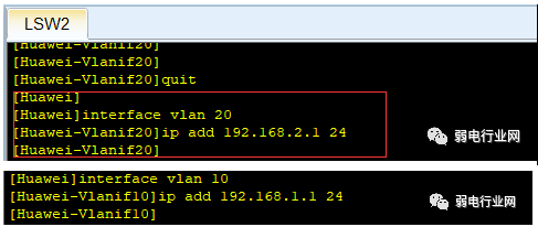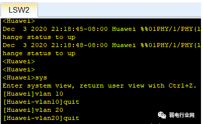 那么就在lsw2中创建了两个vlan,10与20。