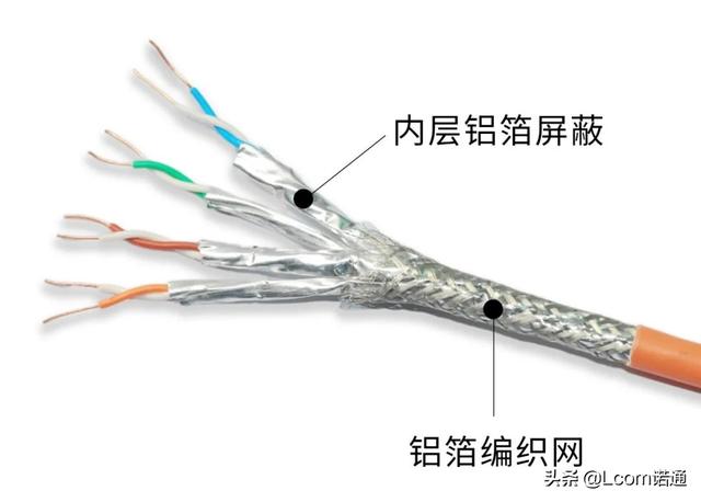 每一对线都有一个铝箔屏蔽层,四对线合在一起还有一个公共的金属编织屏蔽层,这是七类线的标准结构。